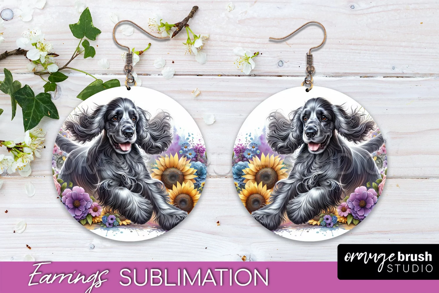 Cocker Spaniel Earrings Dog Sublimation Floral PNG example image 1
