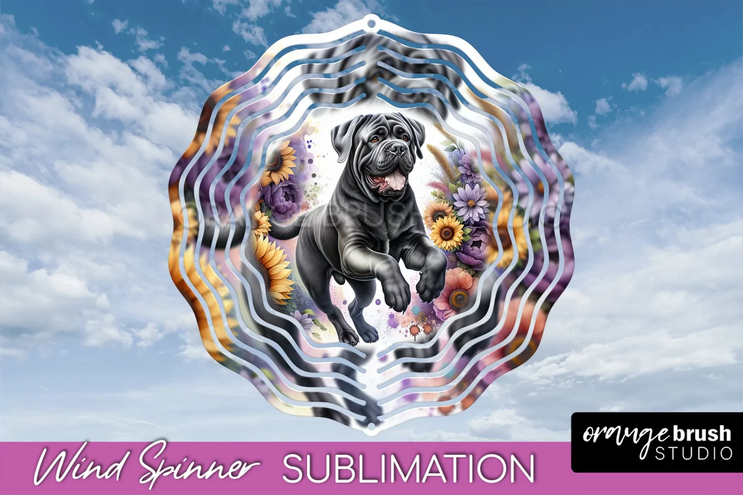 Bullmastiff Wind Spinner Dog Sublimation Floral PNG