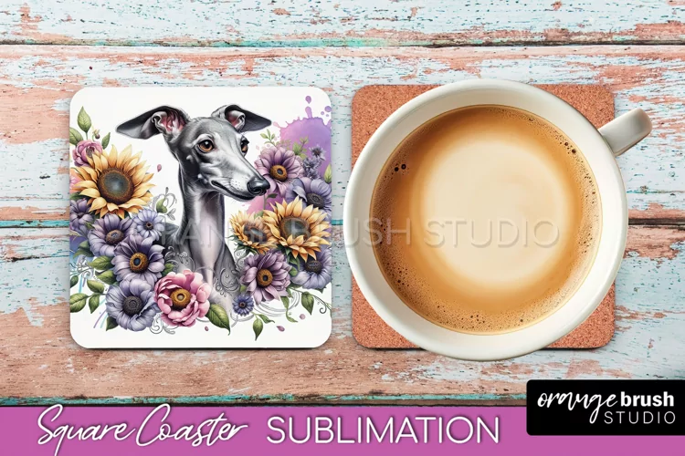 Italian Greyhound Square Coaster Dog Sublimation Floral PNG example image 1