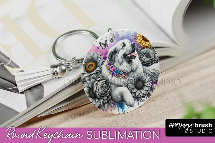 Great Pyrenees Keychain Dog Sublimation Floral PNG