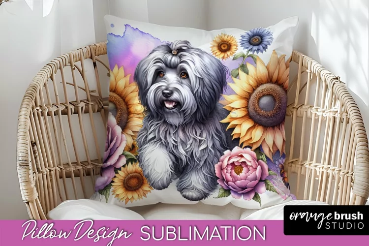 Havanese Pillow Cover Dog Sublimation Floral PNG
