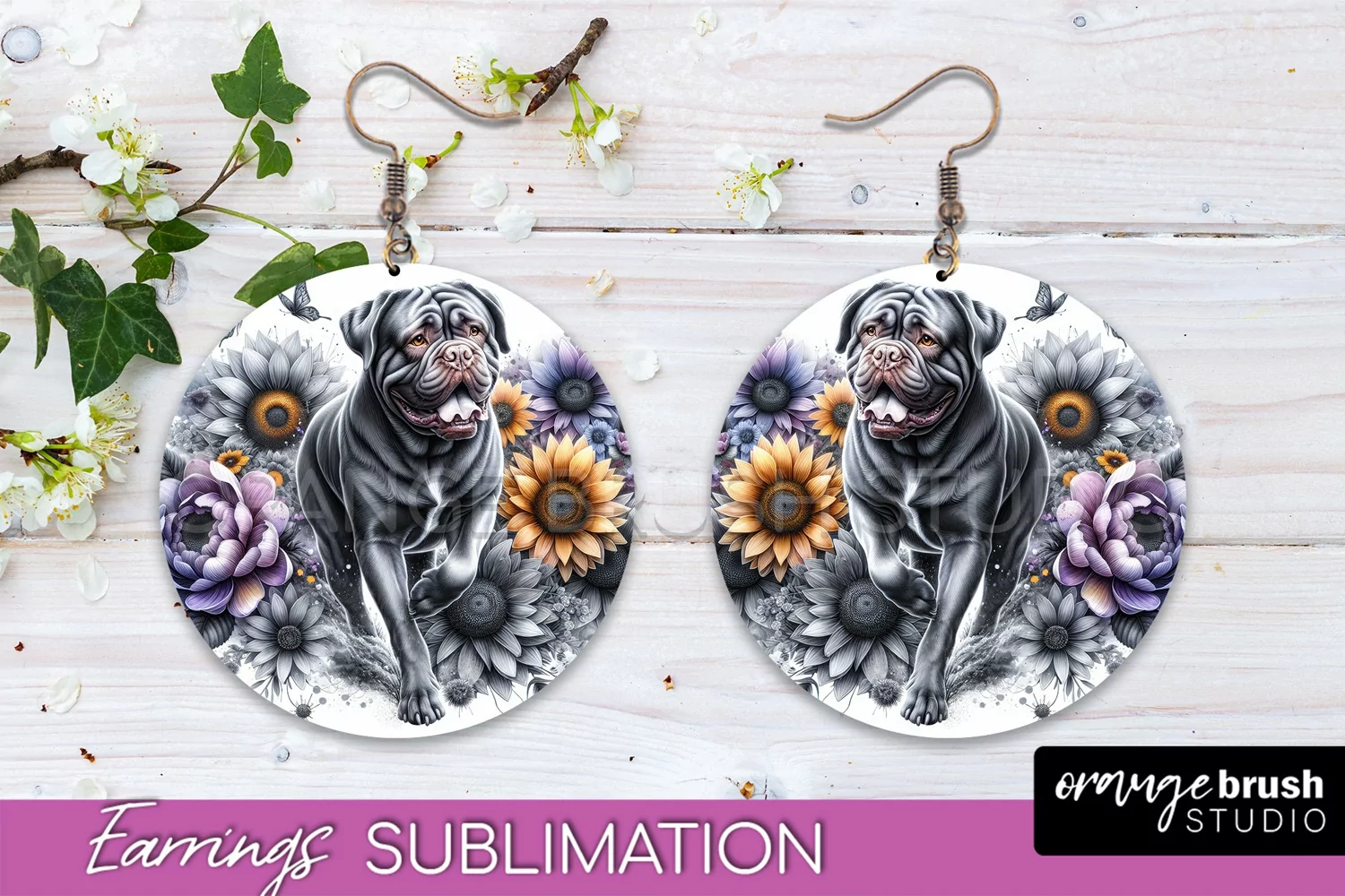 Dogue de Bordeaux Earrings Dog Sublimation Floral PNG