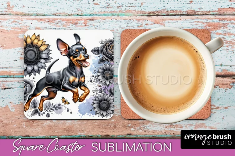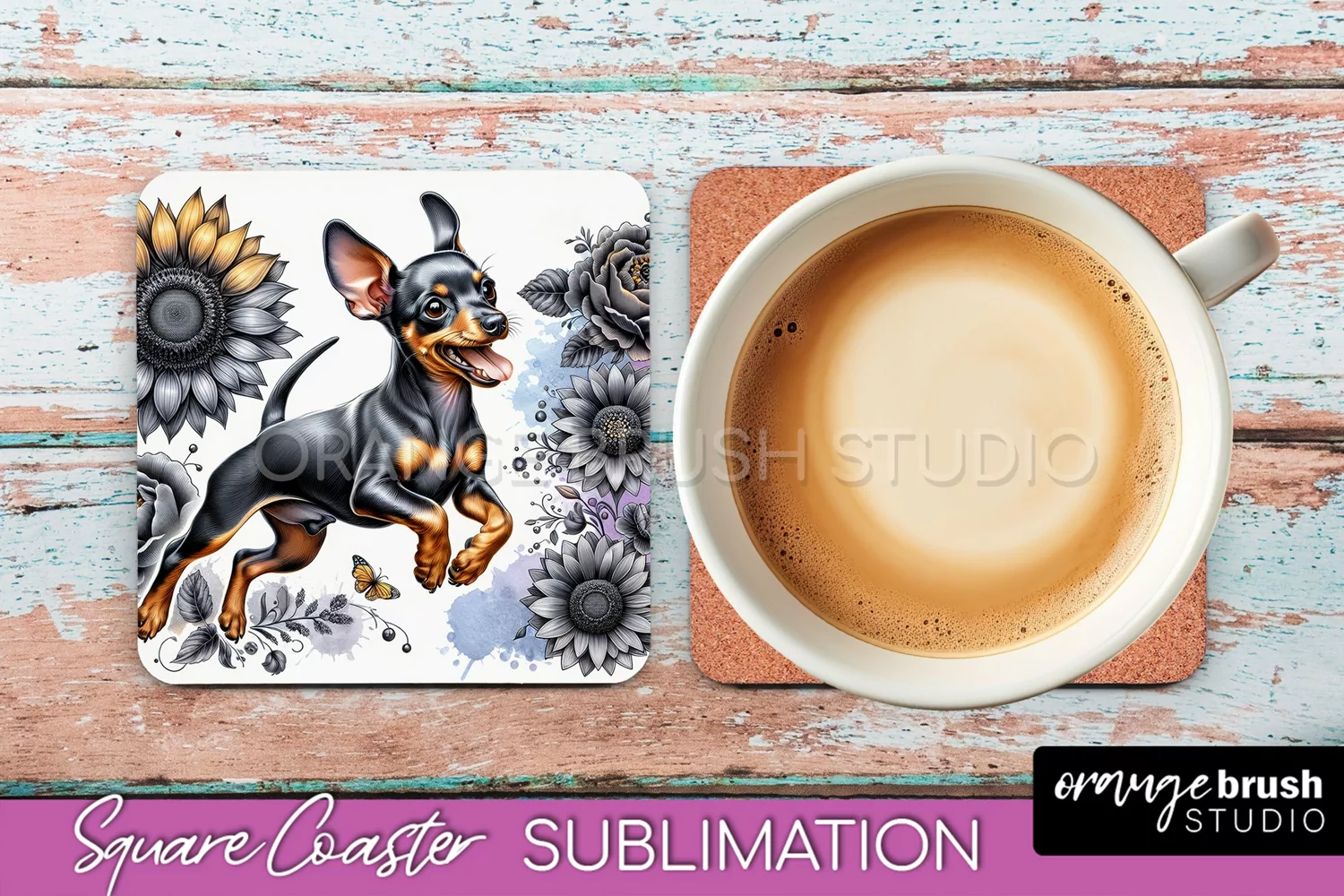 Miniature Pinscher Square Coaster Dog Sublimation Floral PNG