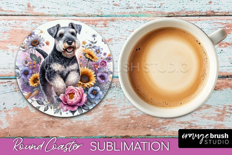 Lakeland Terrier Round Coaster Dog Sublimation Floral PNG
