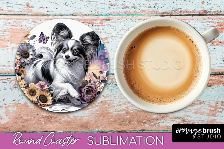 Papillon Dog Coaster Floral Dog Sublimation Dog Breed Sublimation Dog Coaster Sublimation Dog Mom Coaster Dog Round Coaster Dog Lover Coaster Dog Breed Coaster