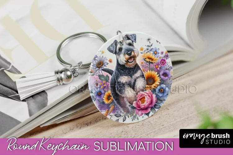 Lakeland Terrier Keychain Dog Sublimation Floral PNG