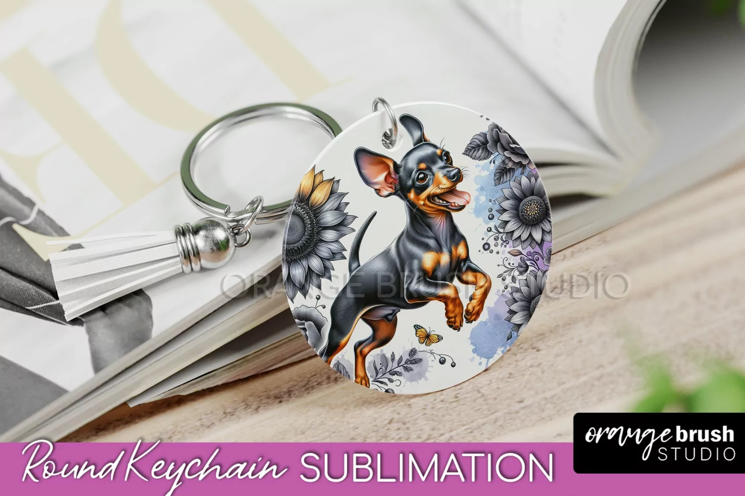 Miniature Pinscher Keychain Dog Sublimation Floral PNG