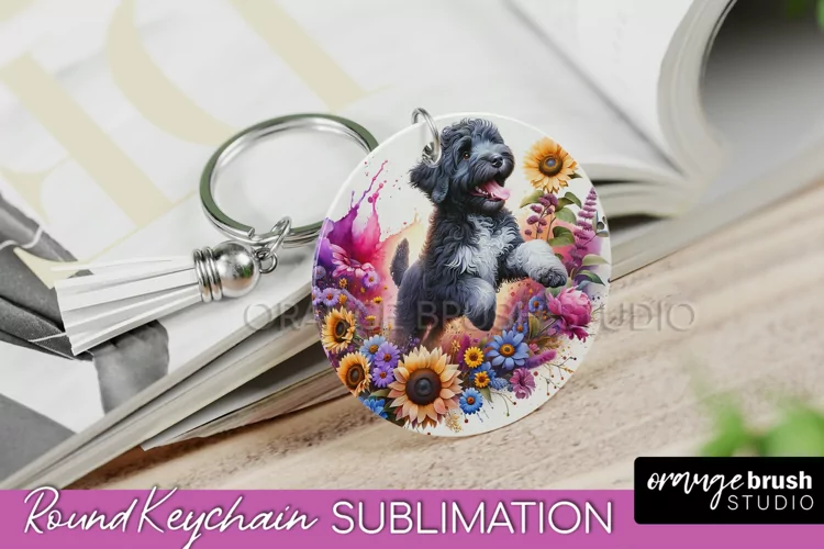 Portuguese Water Dog Keychain Dog Sublimation Floral PNG
