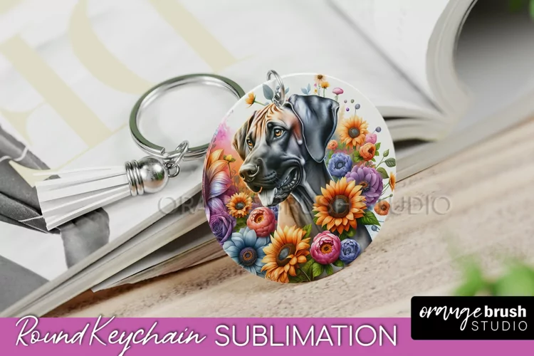 Rhodesian Ridgeback Keychain Dog Sublimation Floral PNG example image 1