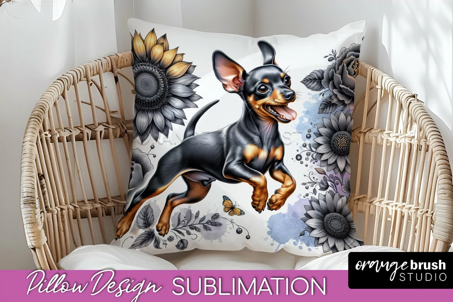 Miniature Pinscher Pillow Cover Dog Sublimation Floral PNG