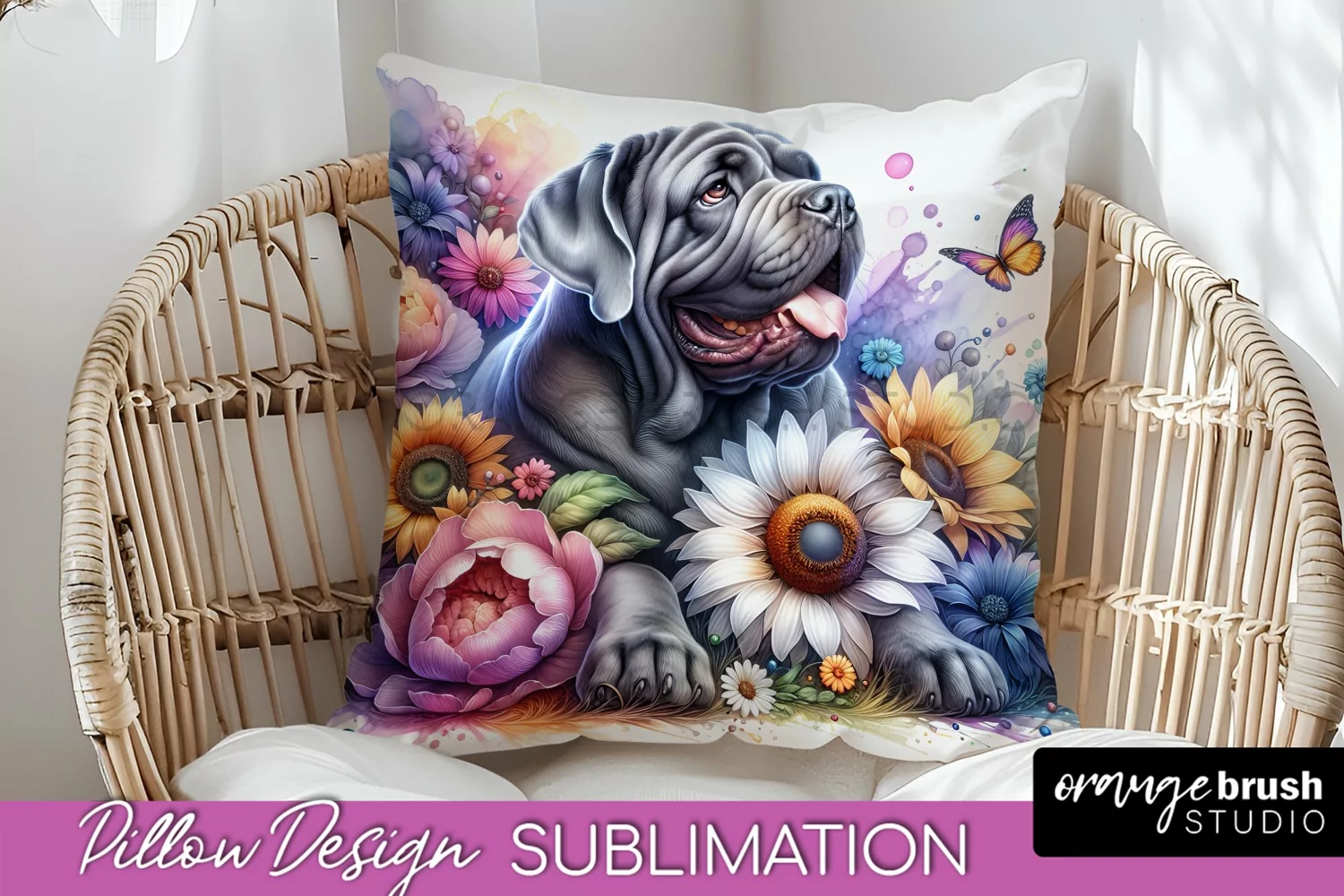 Neapolitan Mastiff Pillow Cover Dog Sublimation Floral PNG