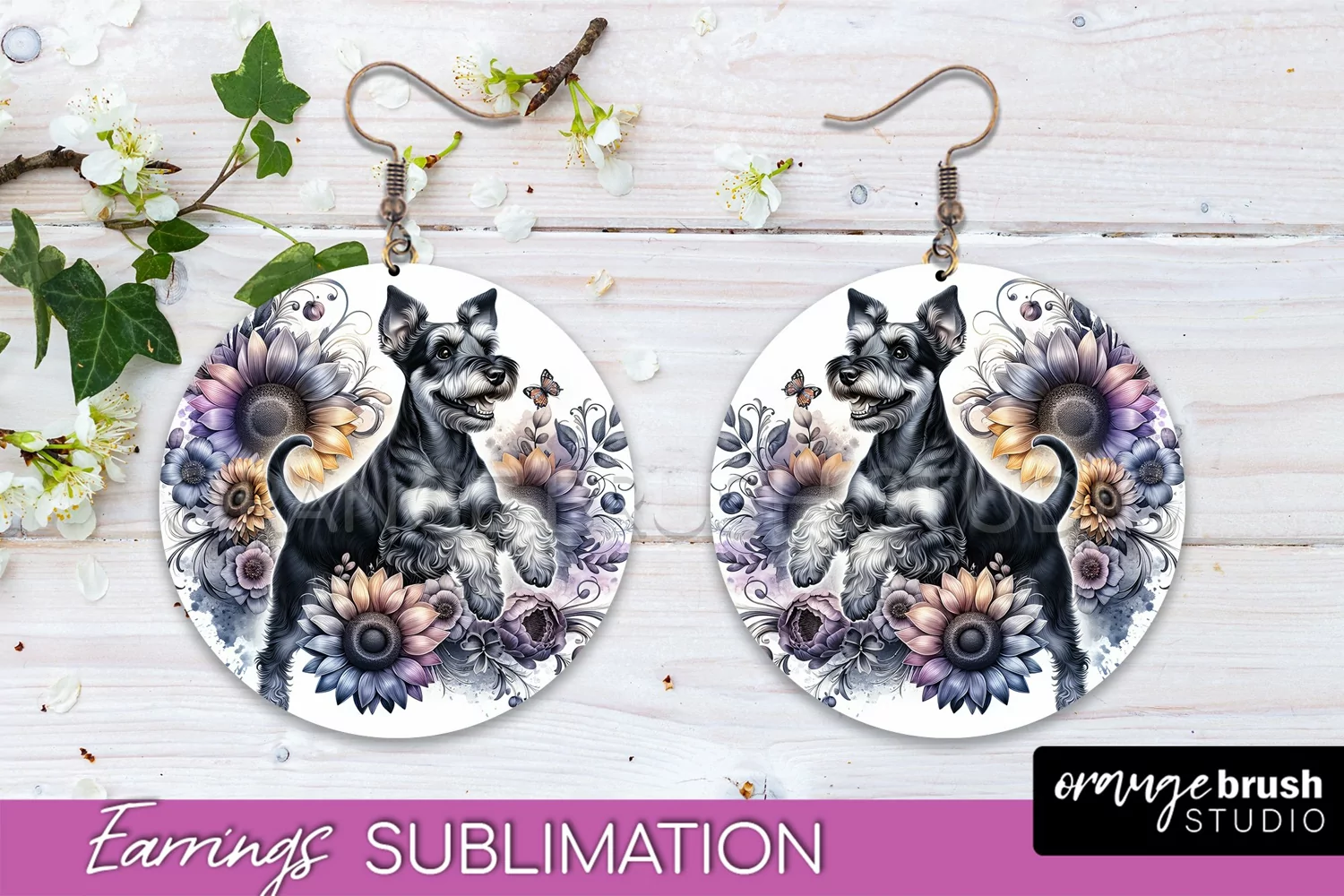 Miniature Schnauzer Earrings Dog Sublimation Floral PNG example image 1