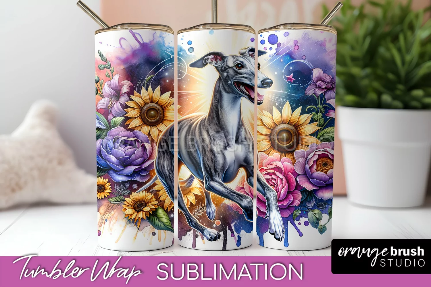 Whippet Tumbler Wrap Dog Sublimation Floral PNG