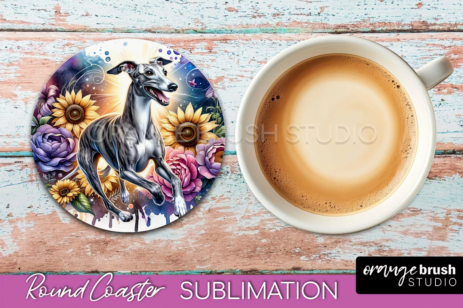 Whippet Round Coaster Dog Sublimation Floral PNG
