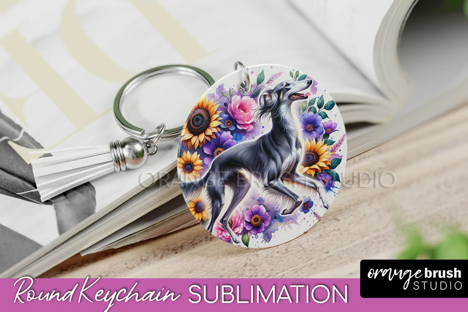 Saluki Dog Keychain Cute Dog Keychain Dog Mom Keychain Dog Breed Sublimation Dog Lover Keychain Dog Round Keychain Dog Keychain Sublimation Dog Breed Keychain Floral Dog Keychain