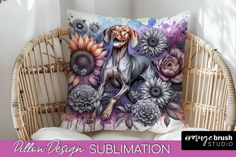 Vizsla Pillow Cover Dog Sublimation Floral PNG