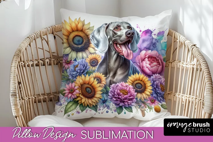 Weimaraner Pillow Cover Dog Sublimation Floral PNG example image 1