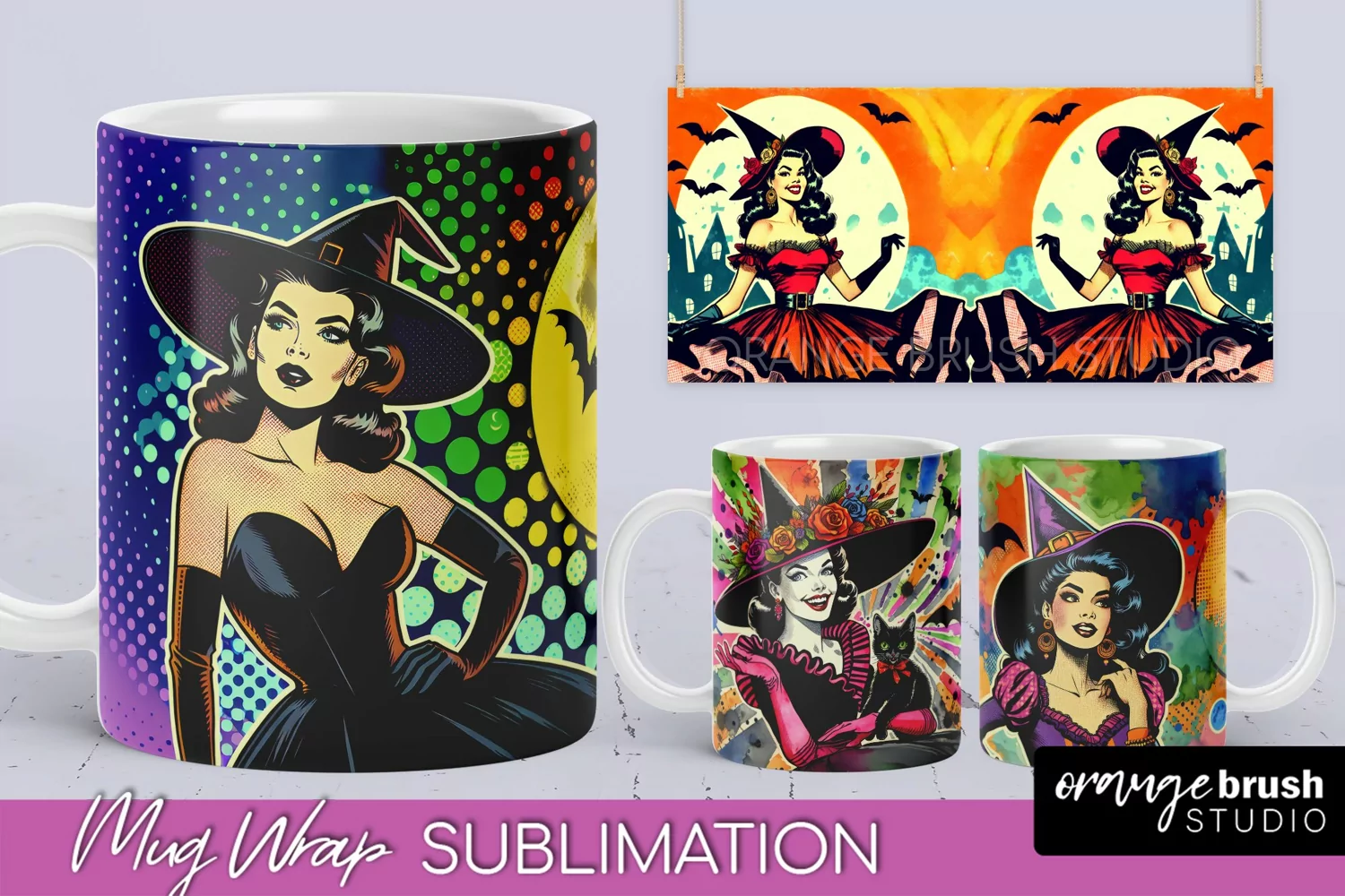 Witch Mug Wrap - Retro Halloween Mug Sublimation Designs example image 1