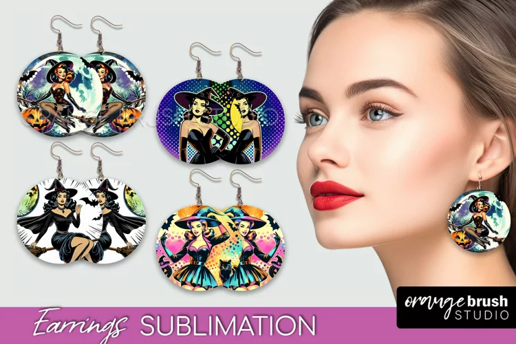 Halloween Earrings Sublimation Witch Earrings Sublimation Witch Earrings Png Halloween Round Earrings Pin Up Witch Girl Pin Up Witch Sublimation Vintage Halloween Earrings Retro Halloween Earrings Halloween Witch Earrings Pin Up Retro Earrings