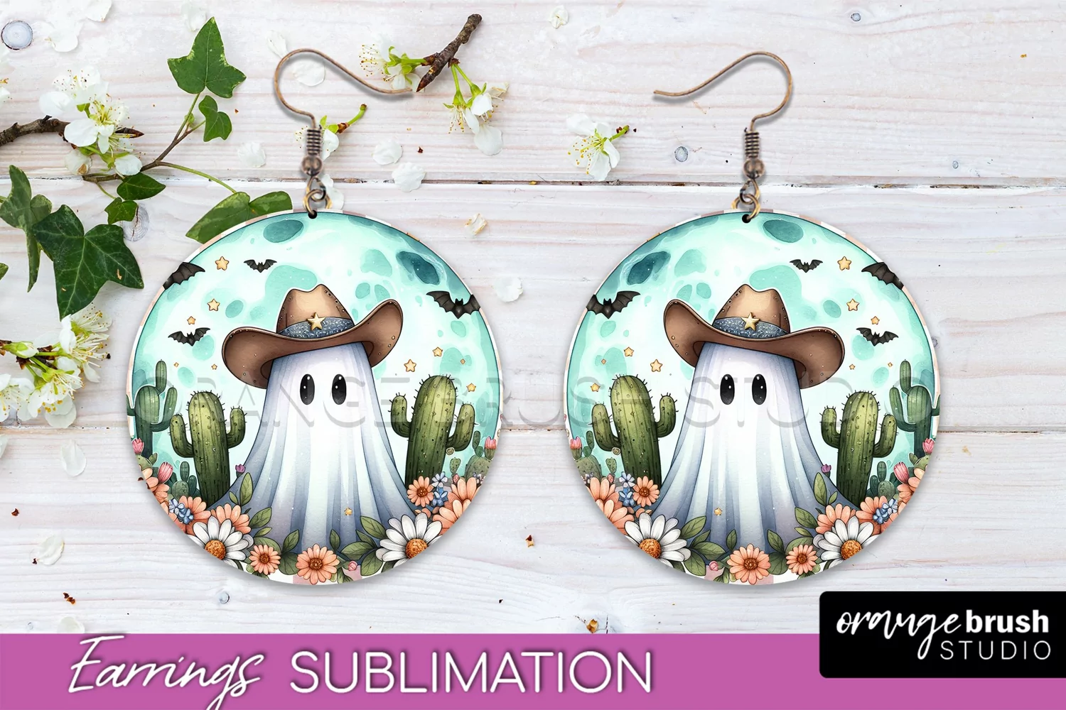 Western Halloween Earrings, Ghost Round Earrings Sublimation example image 1