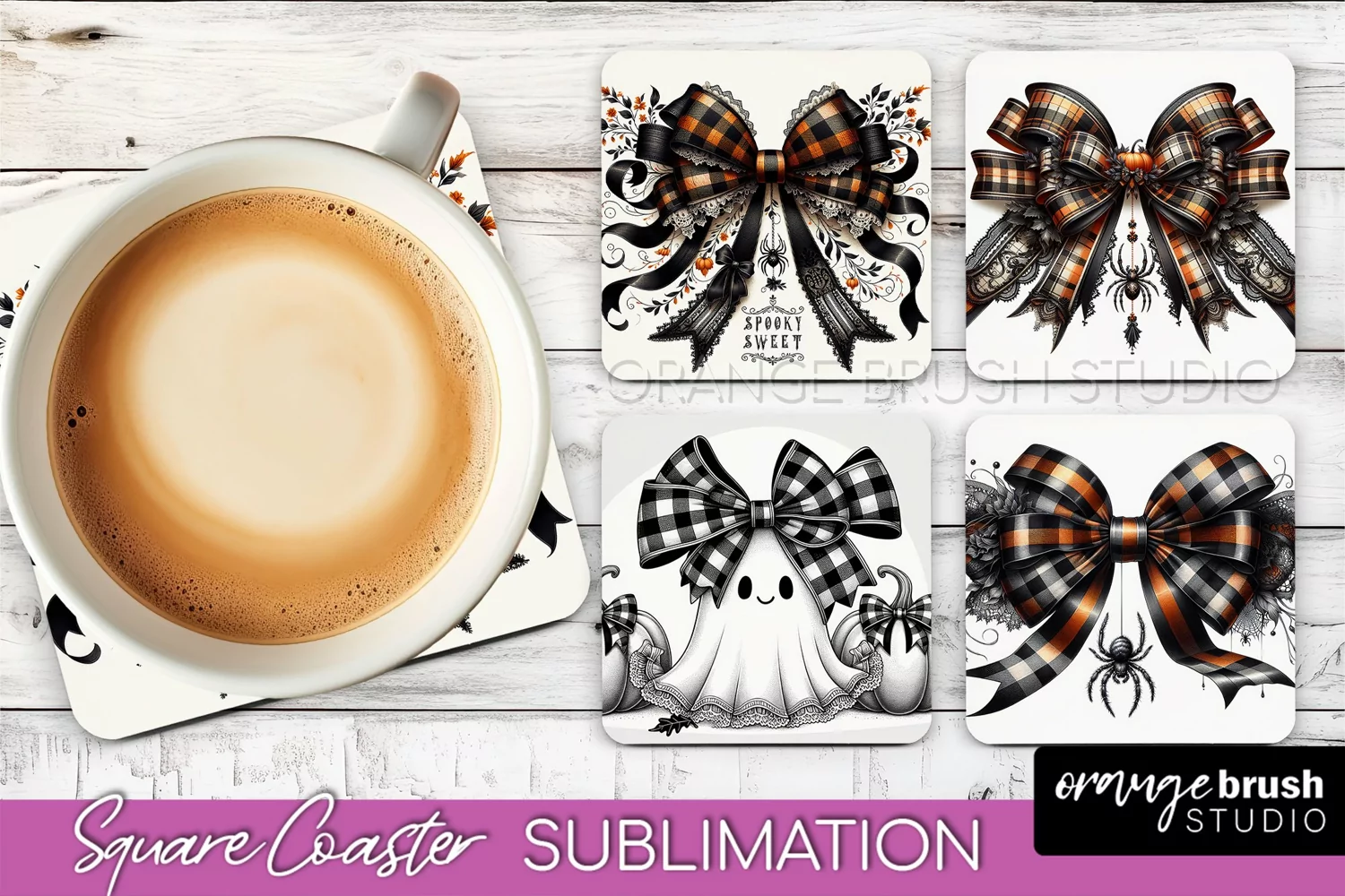 Halloween Coquette Bow Square Coaster Sublimation example image 1