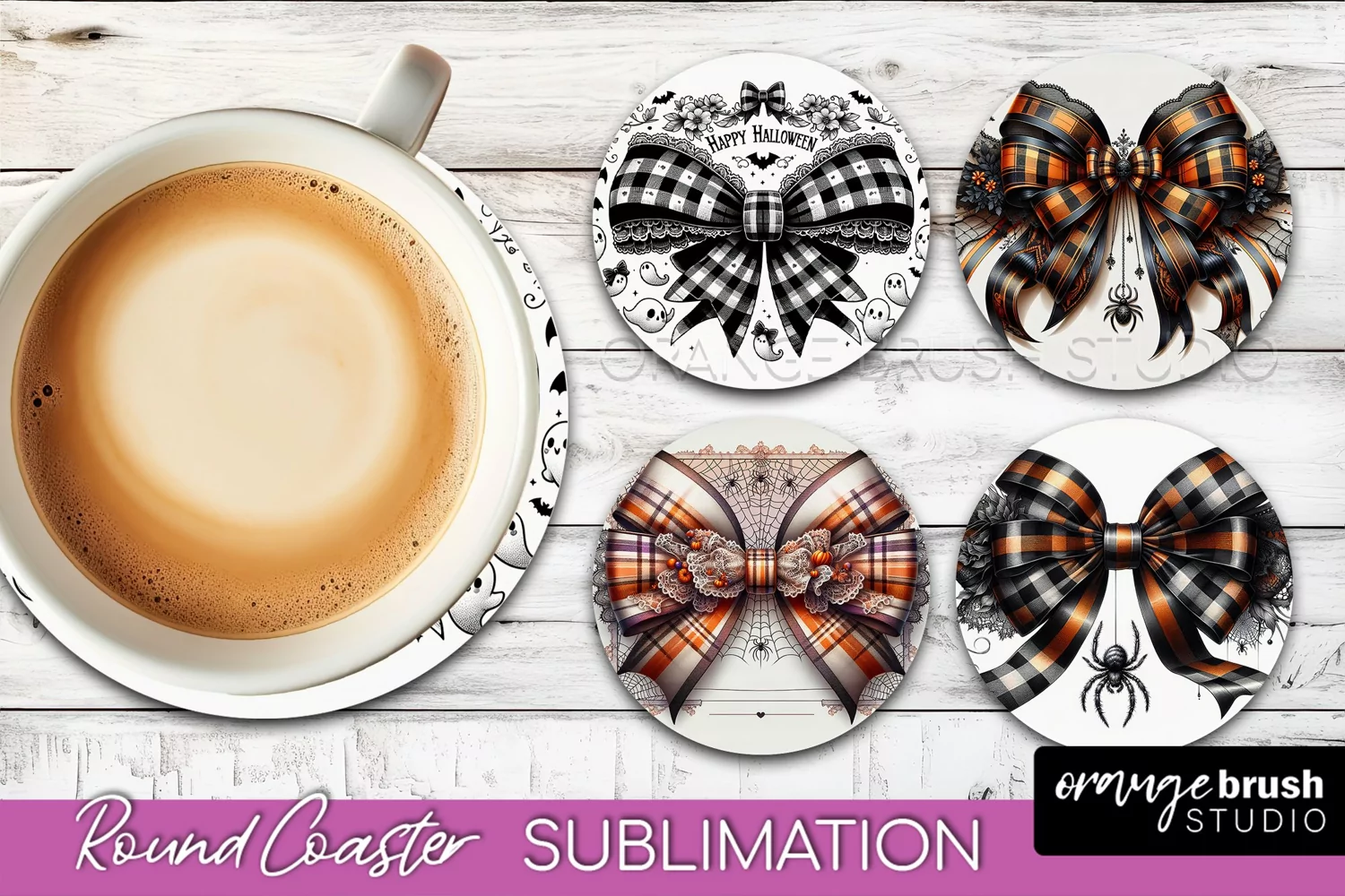 Halloween Coquette Bow Round Coaster Sublimation example image 1