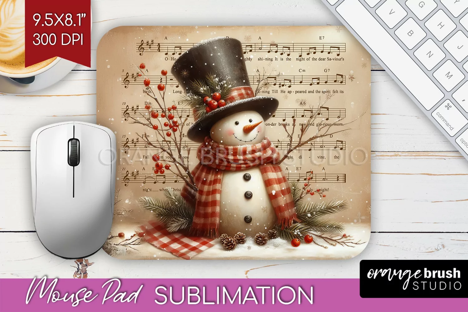 Snowman Mouse Pad Sublimation - Vintage Christmas Mousepad example image 1