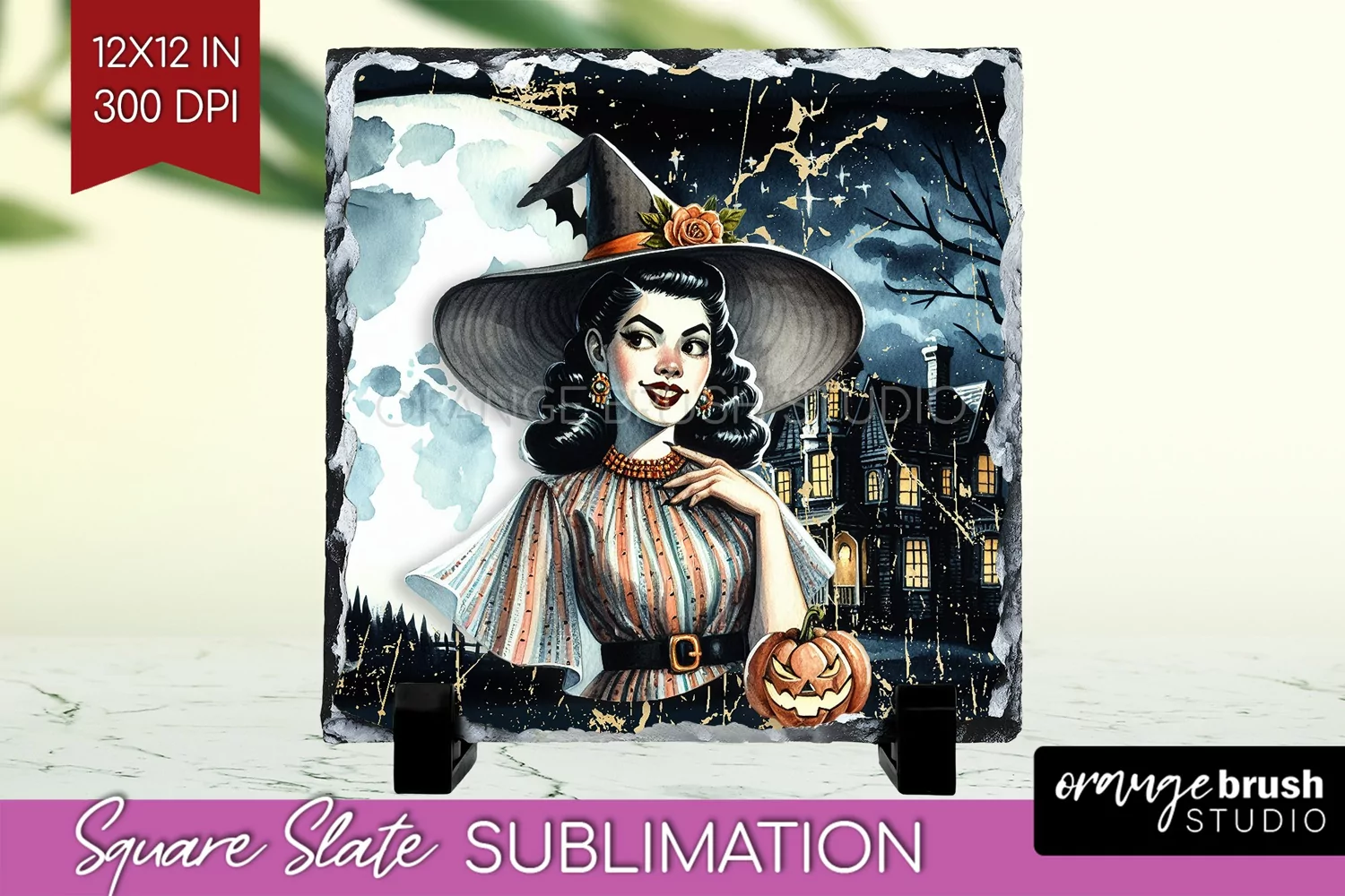 Witch Slate PNG - Retro Halloween Square Slate Sublimation example image 1