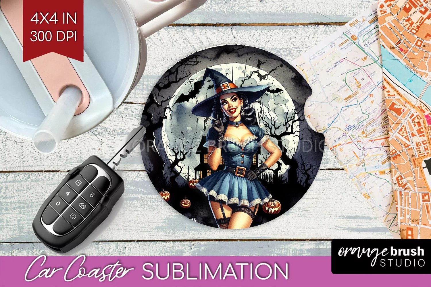 Similar Design Products to Witch Car Coaster - Retro Halloween Coaster PNG Sublimation
