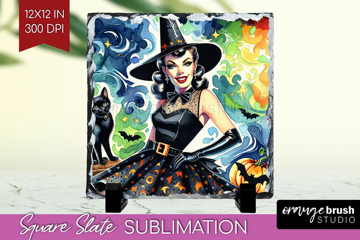 Witch Slate PNG - Retro Halloween Square Slate Sublimation
