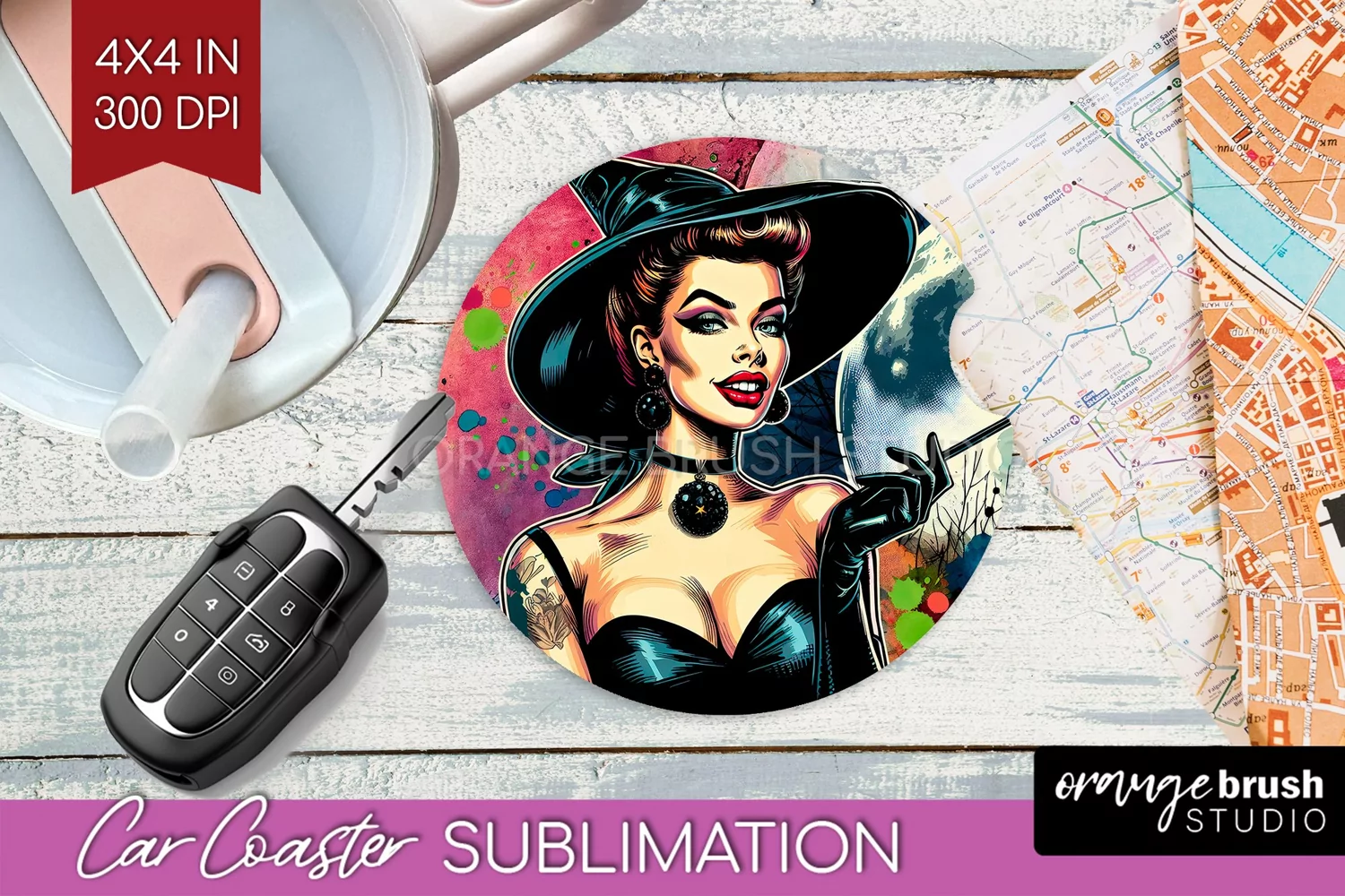 Similar Design Products to Witch Car Coaster - Retro Halloween Coaster PNG Sublimation