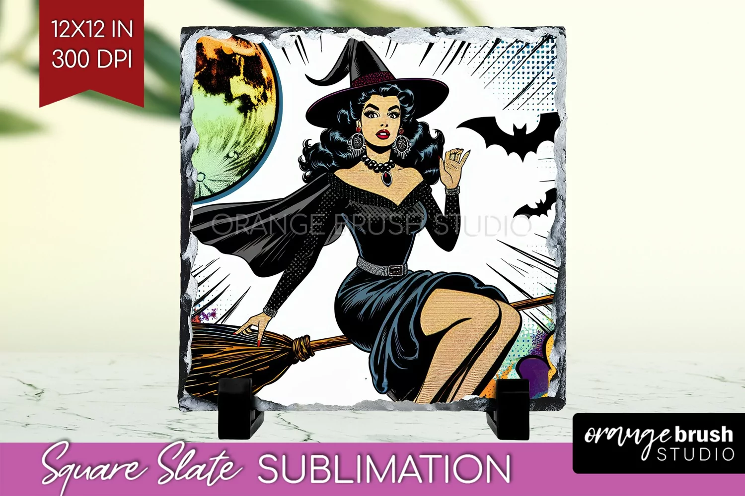 Retro Witch Slate PNG - Halloween Square Slate Sublimation example image 1