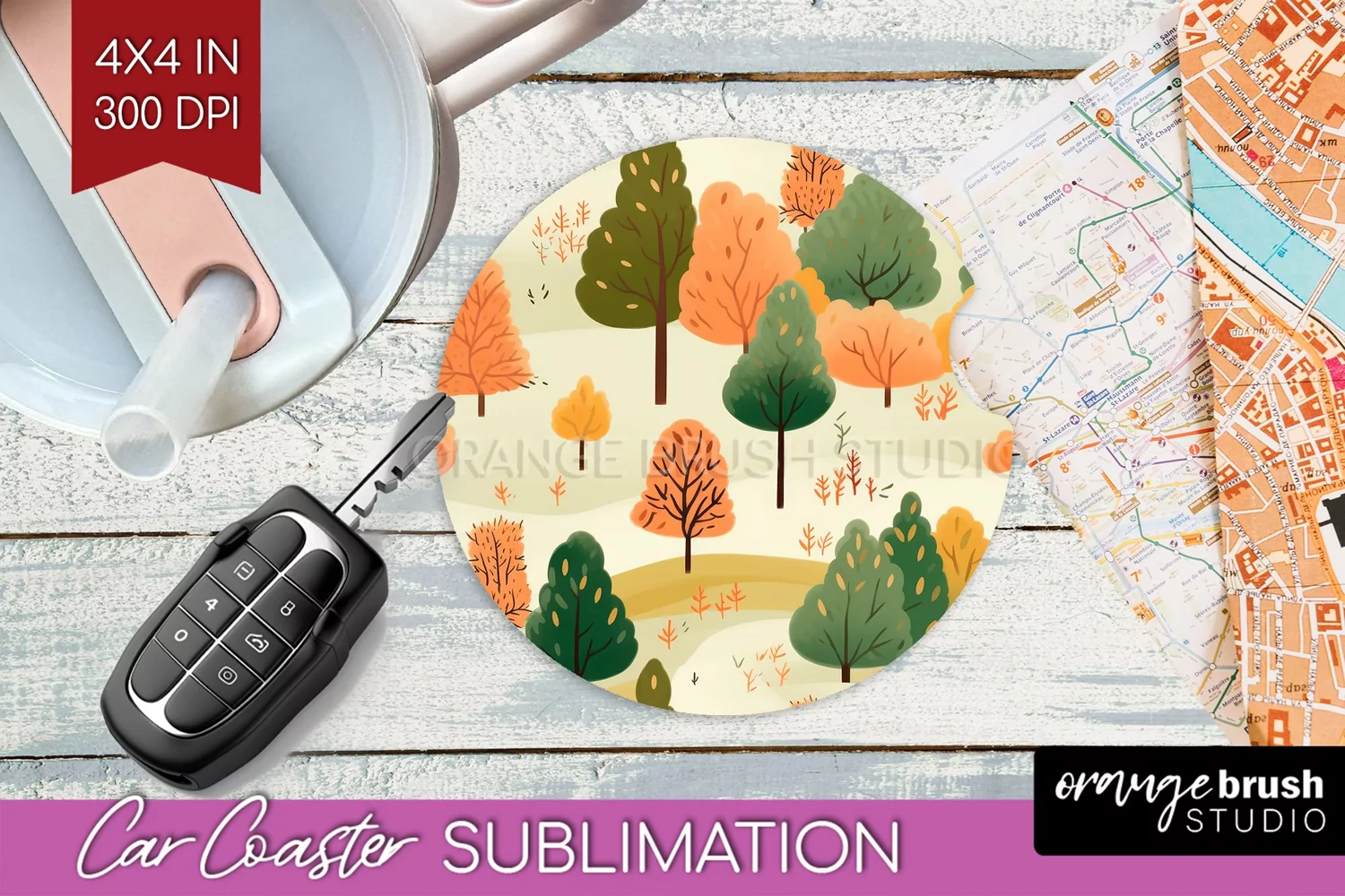 Autumn Forest Car Coaster - Fall Coaster PNG Sublimation