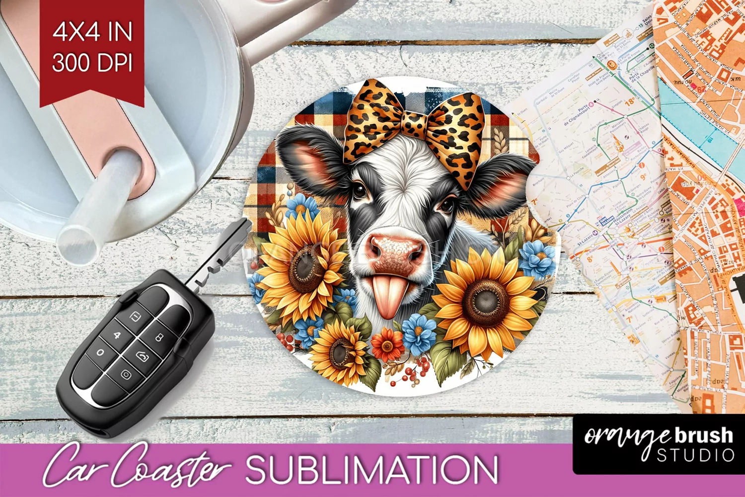 Fall Cow Car Coaster - Autumn Cow Coaster PNG Sublimation example image 1