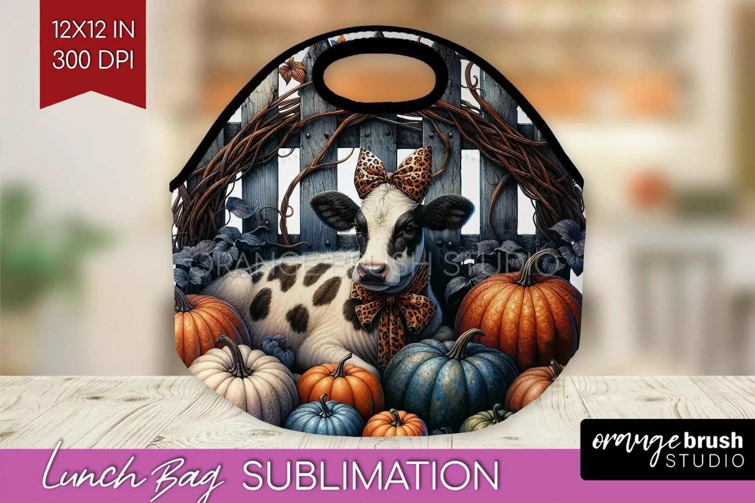 Fall Cow Lunch Bag - Autumn Cow Lunch Bug PNG Sublimation example image 1