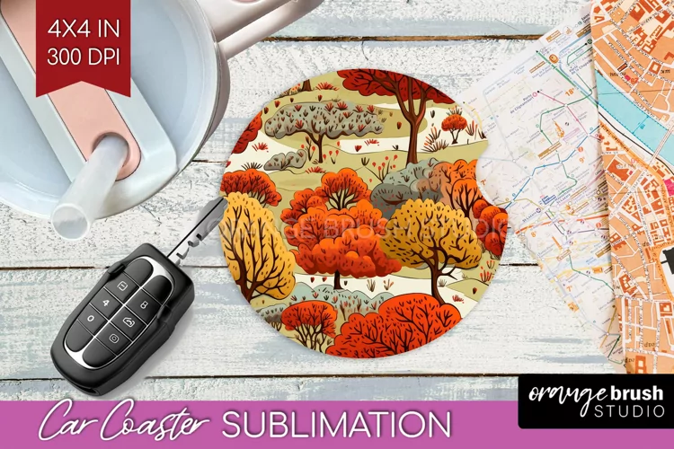 Autumn Forest Car Coaster - Fall Coaster PNG Sublimation
