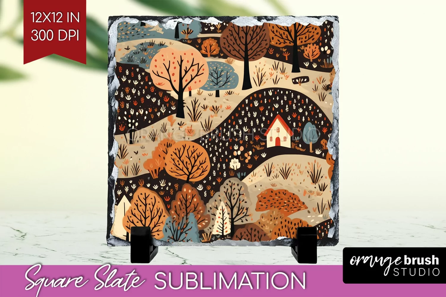 Autumn Forest Slate PNG - Fall Square Slate Sublimation