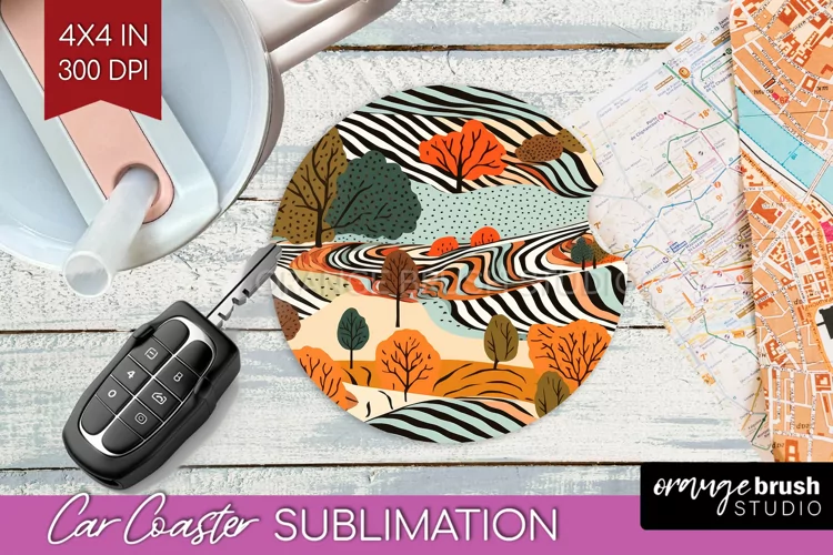 Autumn Forest Car Coaster - Fall Coaster PNG Sublimation