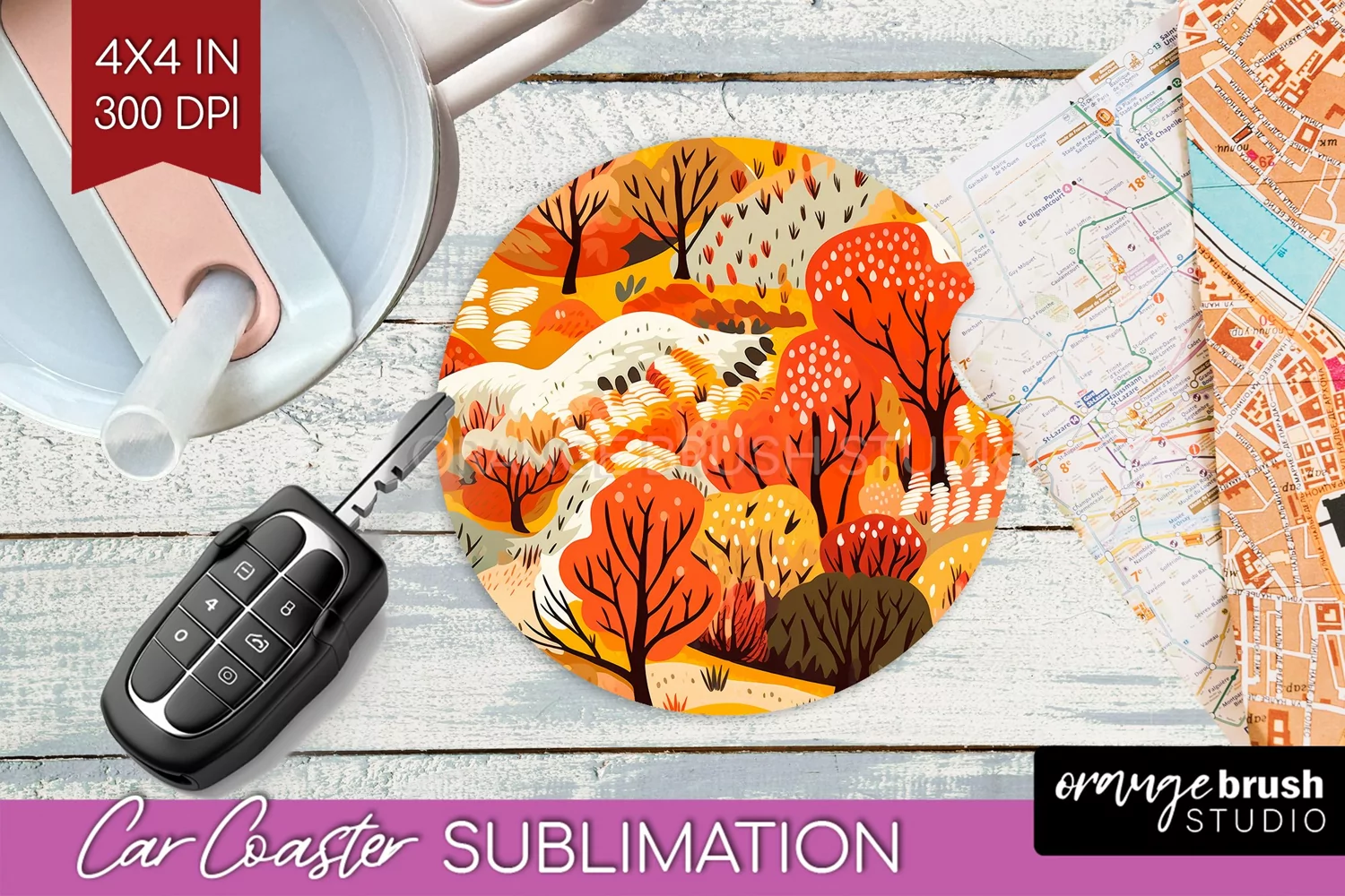 Autumn Forest Car Coaster - Fall Coaster PNG Sublimation