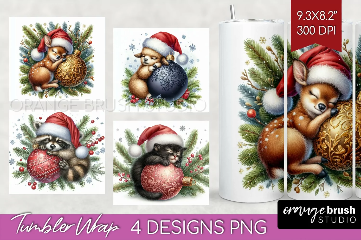 Christmas Animals Tumbler Wrap - Cute Christmas Tumbler PNG