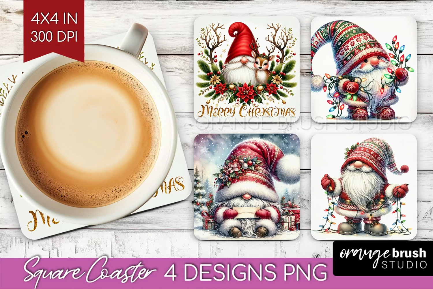 Christmas Gnome Square Coaster - Cute Gnome Coaster PNG example image 1