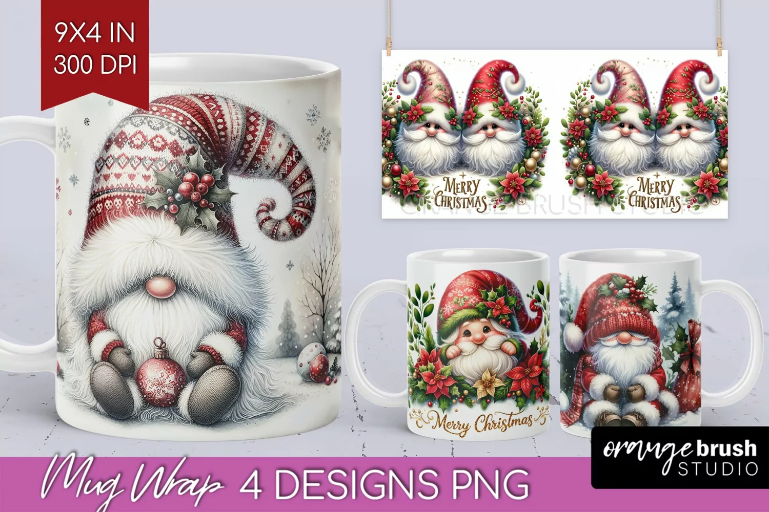 Christmas Gnome Mug Wrap - Cute Gnome Mug PNG Sublimation