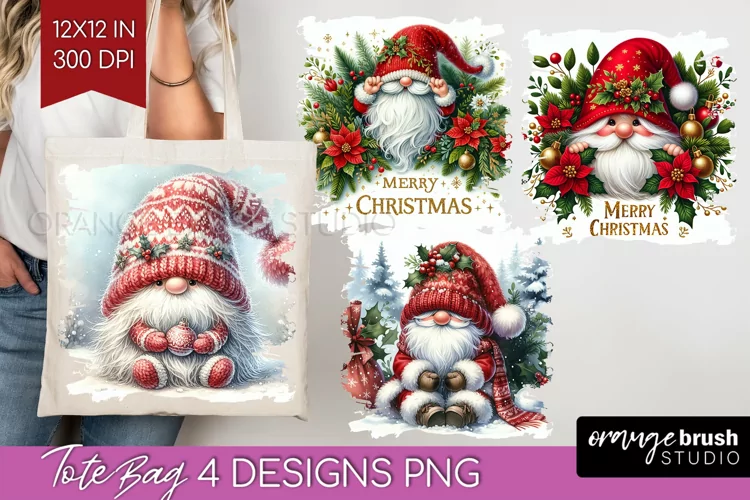 Christmas Gnome Tote Bag - Cute Gnome Tote Bag PNG example image 1