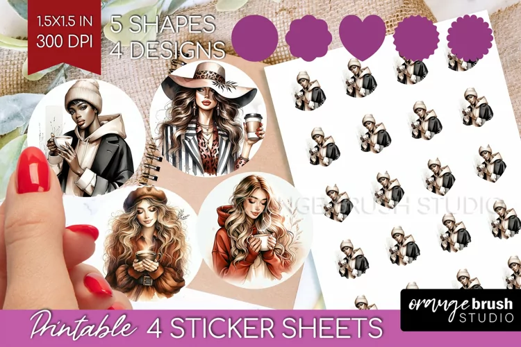 -4 printable sticker sheets 8,5 X 11 in PNG formats.