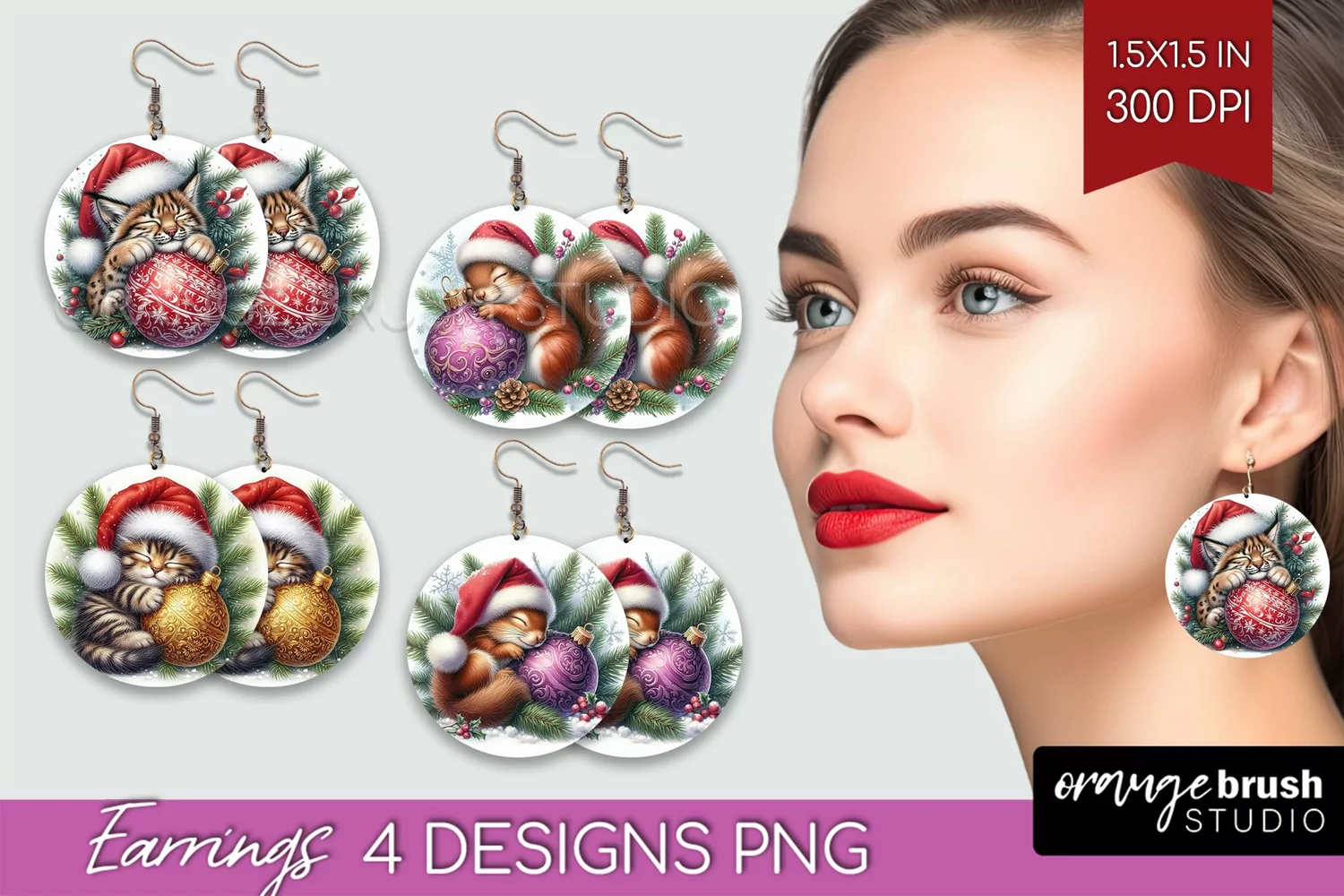 Christmas Animals Round Earrings - Cute Christmas PNG example image 1