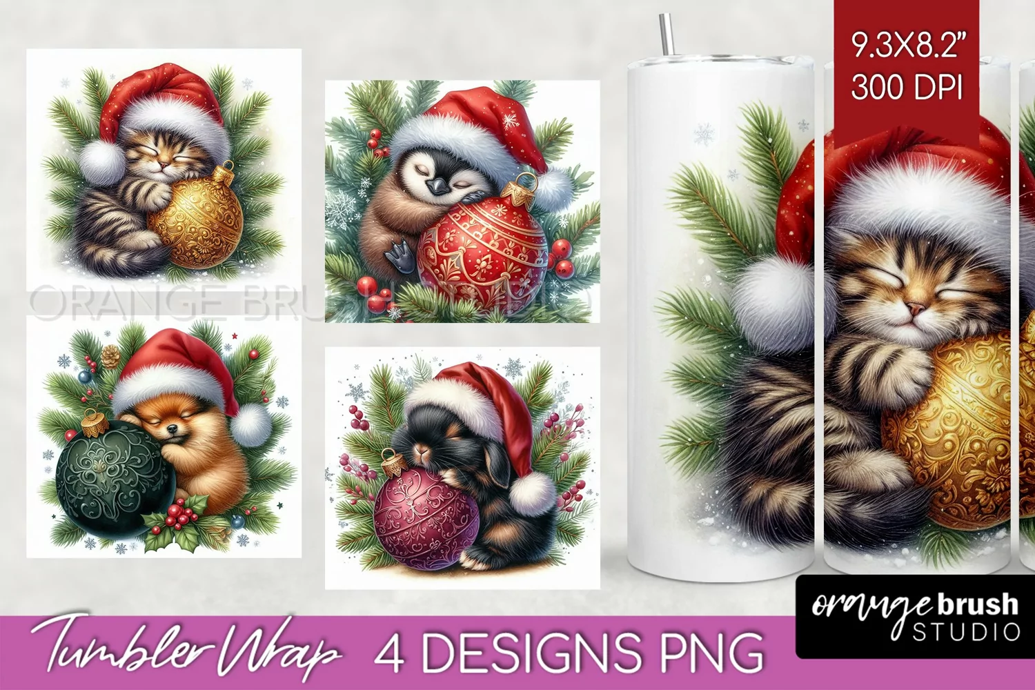 Christmas Animals Tumbler Wrap - Cute Christmas Tumbler PNG
