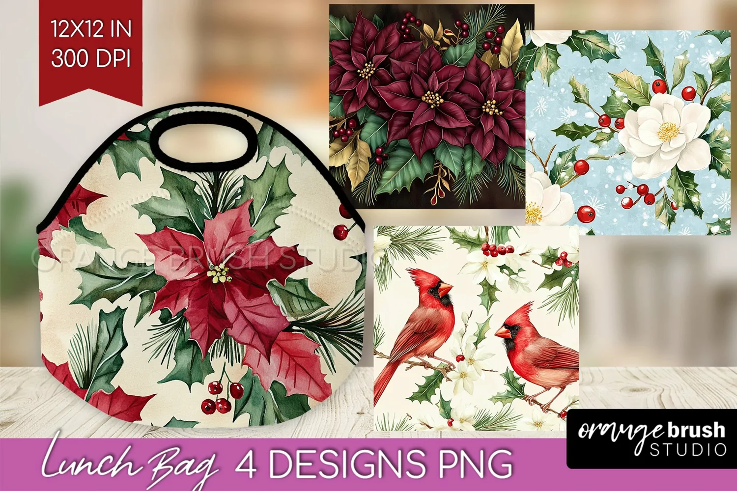 Similar Design Products to Poinsettia Lunch Bag - Christmas Lunch Bug PNG Sublimation