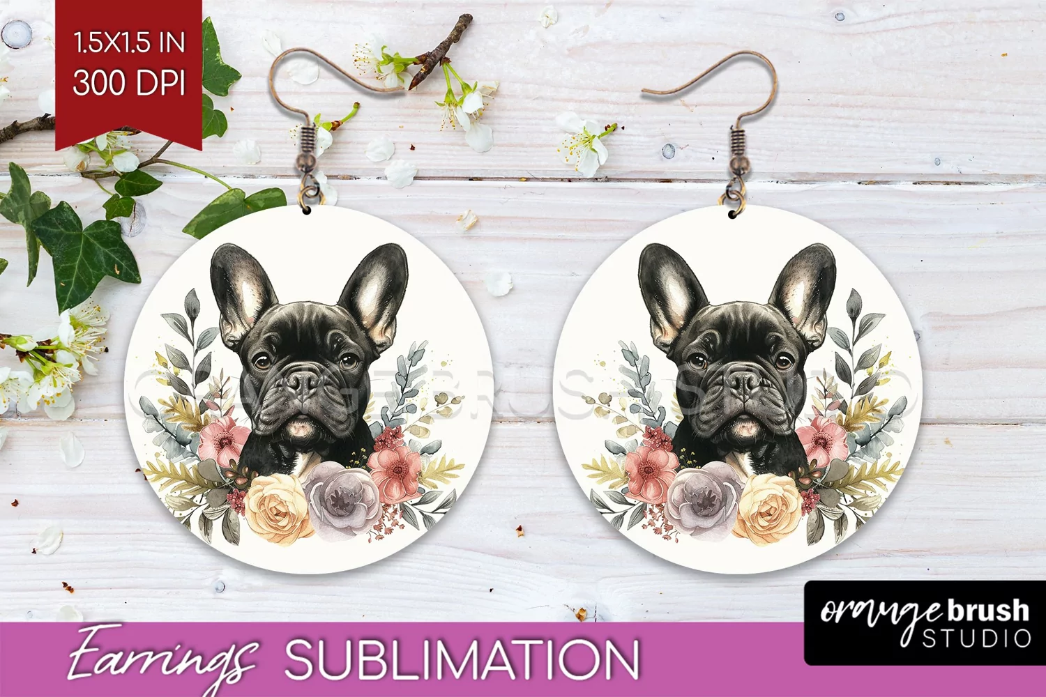 Floral Dog Round Earrings - Flowers PNG Sublimation