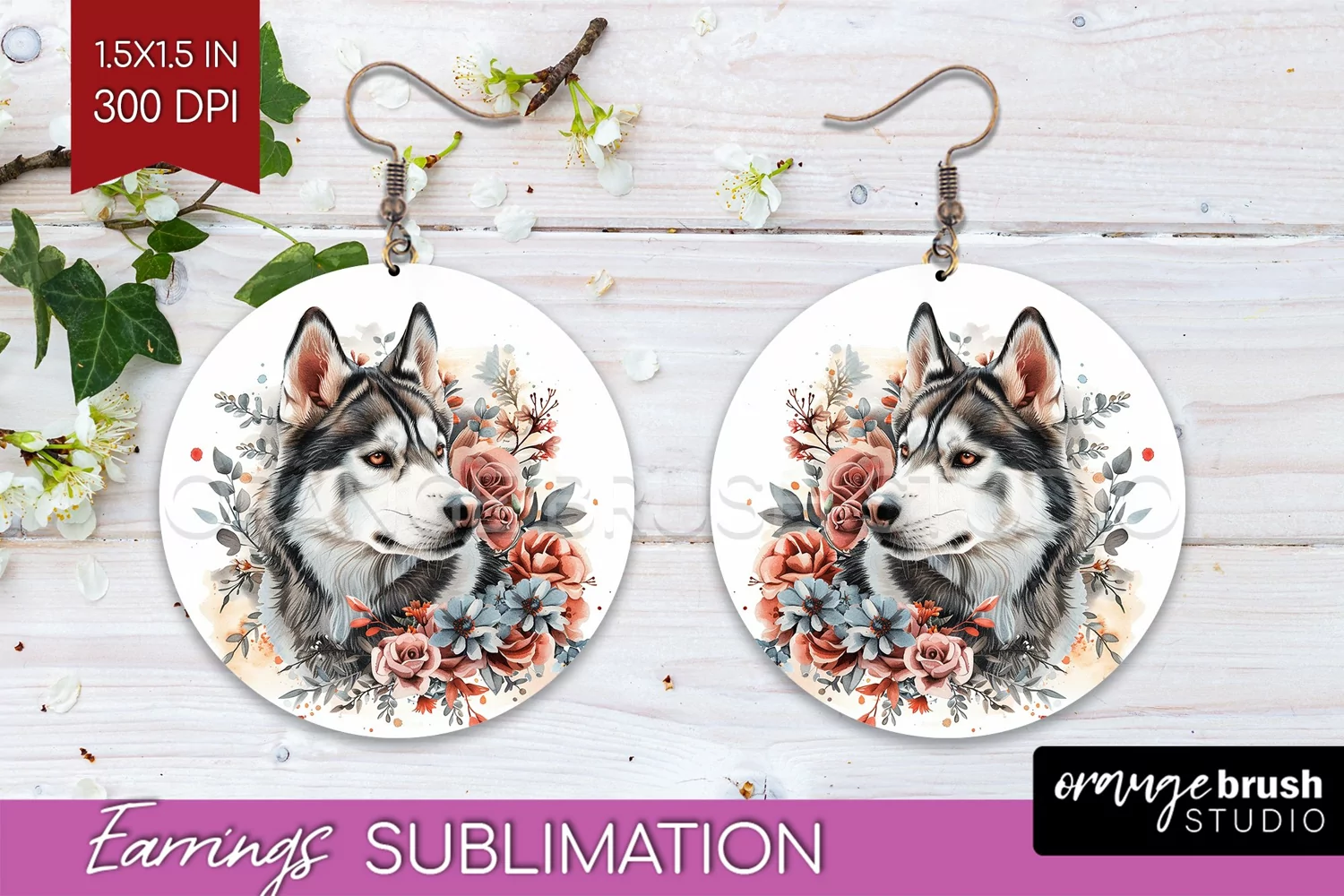 Floral Dog Round Earrings - Flowers PNG Sublimation