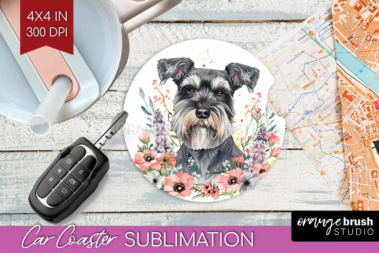 Floral Dog Car Coaster - Flowers Coaster PNG Sublimation example image 1